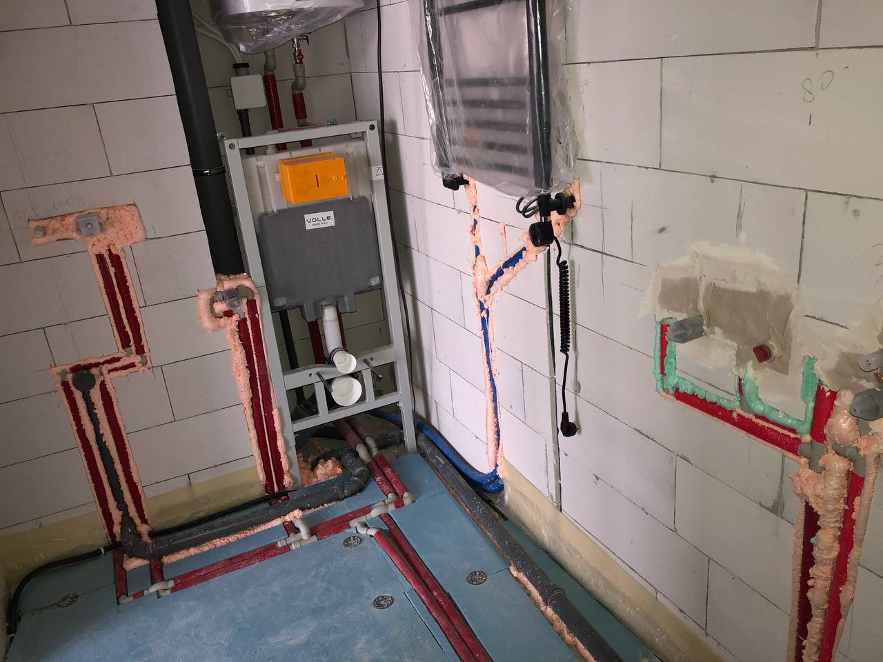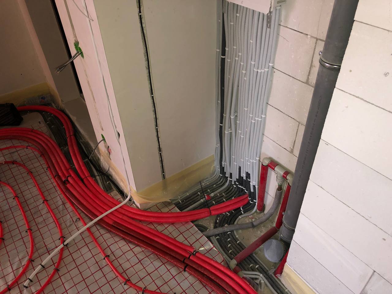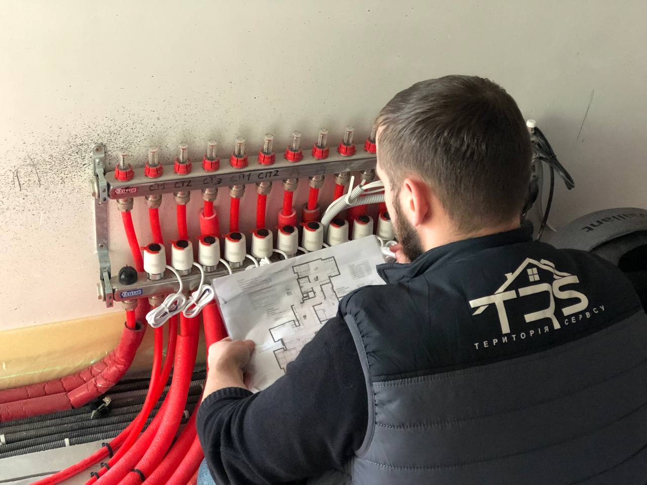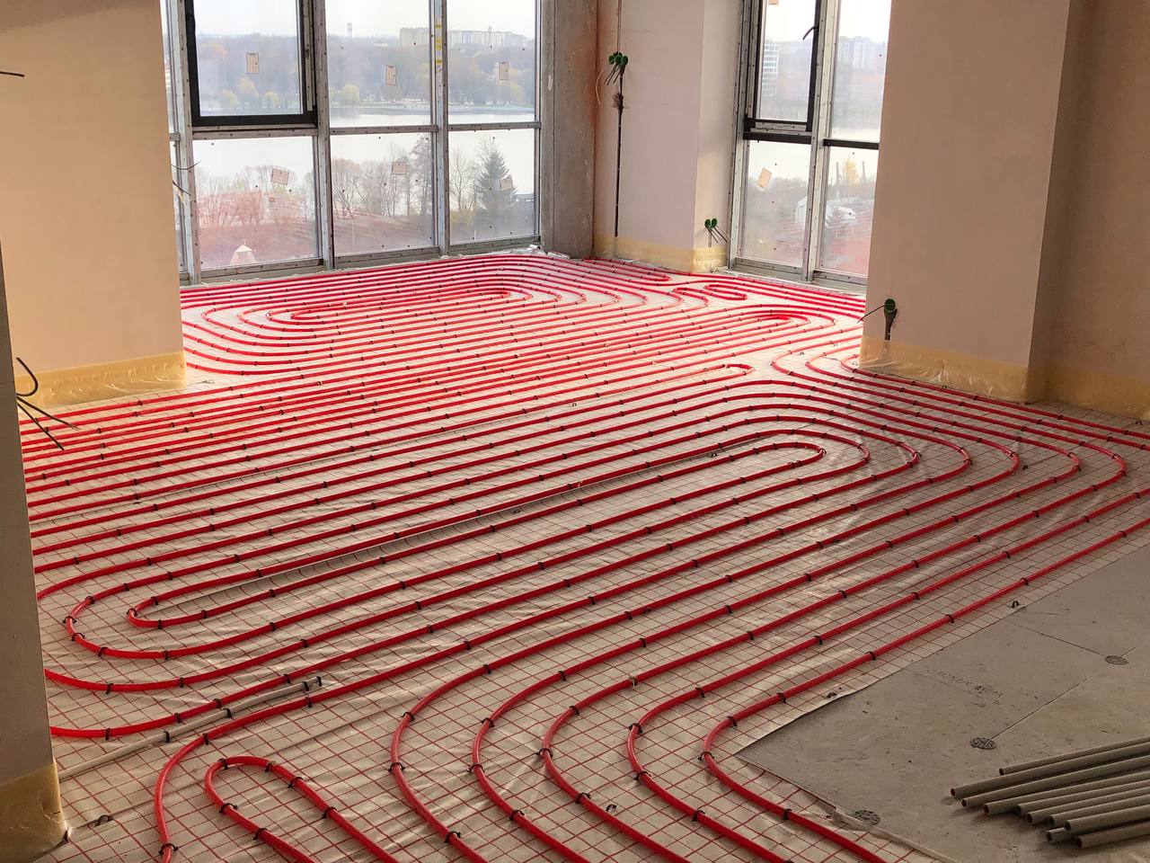 Площа приміщення становить 110 квадратних метрів. Виконано встановлення теплої водяної підлоги з індивідуальним регулюванням завдяки спеціальним терморегуляторам, управління яких здійснюється через бездротову мережу. Для нагрівання гарячої води використовуються бойлери від Thermex та Gorenje, обсягом по 80 літрів кожен.